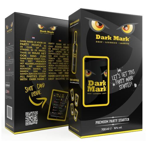 De echte Dark Mark Dropshot nu verkrijgbaar in een mooie giftbox met 4 shotglaasjes inbegrepen.