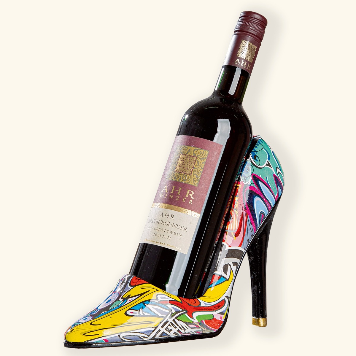De Street Art Pumps flessenhouder is een unieke flessenstandaard die uw flessenopslag naar een hoger niveau tilt. Dit flessenrek van hoogwaardig kunsthars valt op door zijn meerkleurige graffiti-look met zwarte accenten en een glanzend oppervlak. De buitengewone vorm van een hoge hak maakt deze flessenhouder tot een echte blikvanger in elke ruimte. Met een hoogte van 19 cm, een breedte van 23 cm en een diepte van 9 cm biedt dit flessenrek voldoende ruimte voor uw favoriete flessen.