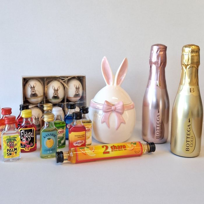 Maak van Pasen een stijlvol feestje met dit exclusieve paaspakket! Een perfecte mix van luxe en gezelligheid: twee verfijnde Bottega Prosecco’s, een selectie heerlijke partyshots en een uniek porseleinen bonbonschaaltje met speelse konijnenoren.Ideaal als origineel cadeau of als eyecatcher op de paastafel.