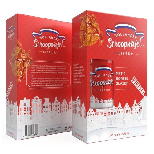 De echte Hollandse stroopwafel nu als likeur te krijgen. Deze mooie giftbox bevat een fles stroopwafellikeur met 4 shotglaasjes inbegrepen.
