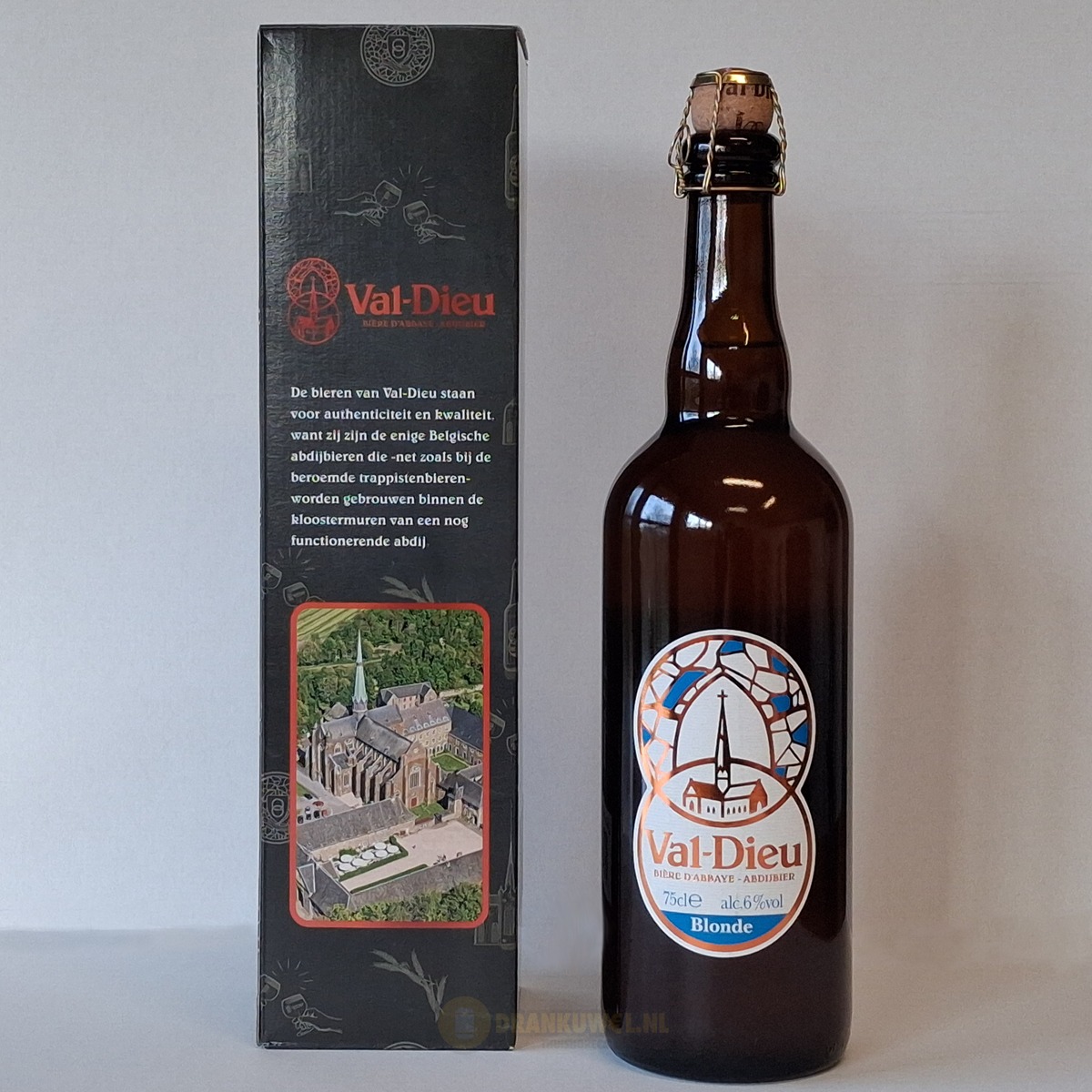 Val-Dieu Blonde is een licht en verfrissend bier met een grote finesse. Het is perfect voor elk moment van de dag, van aperitief tot digestief, en verleidt door de zachte aanzet, gevolgd door een subtiele bitterheid die de smaakervaring compleet maakt. De lichte, langdurige witte schuimkraag maakt elke slok een puur genot. Dit bier wordt op fles hergist en onthult bij elke gelegenheid zijn volle rijkdom.Land van herkomst: Netherlands