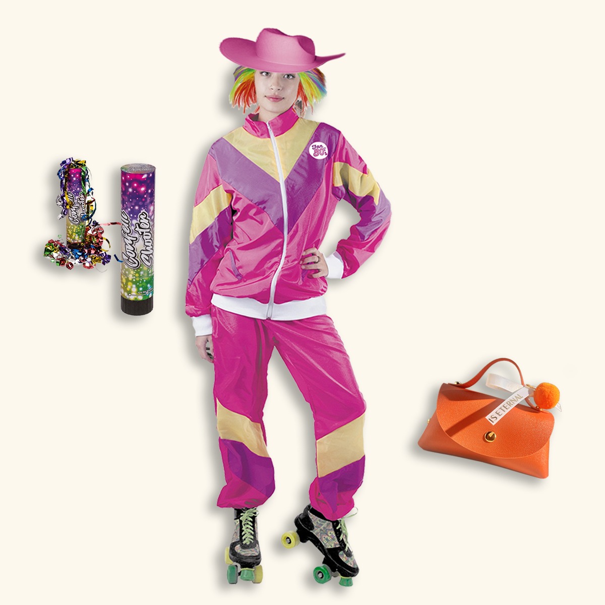 - 1x Roze 80’s joggingpak (jas + broek, maat M/L)